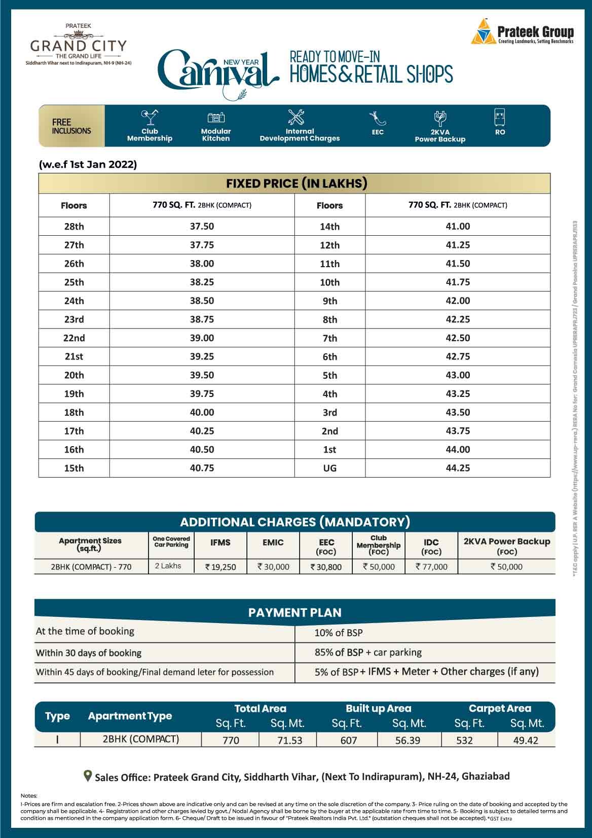 Prateek Grand City Price List