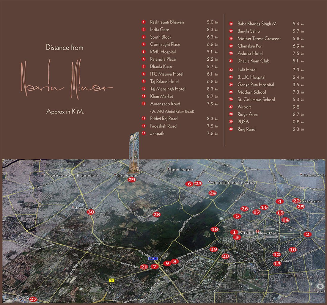 • Most of the apartment overlook views of Pusa Greens, Rashtrapati Bhawan, ITC Maurya, Taj Palace, Delhi Ridge, Connaught Place