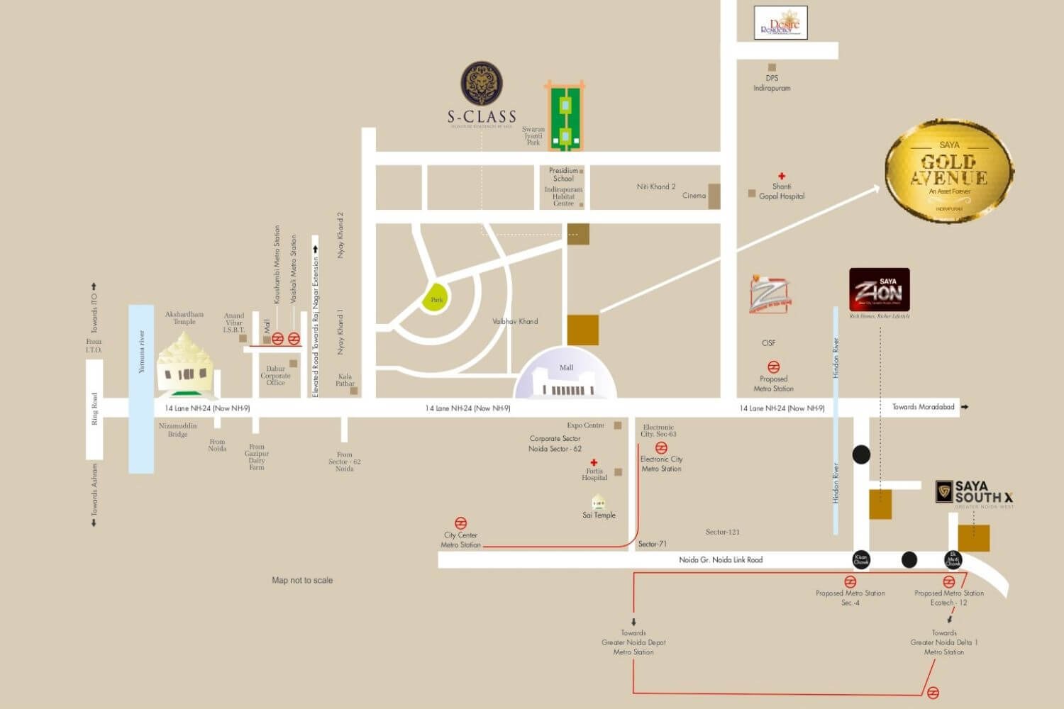 Electronic City Noida, NH9(NH24), Commercial Townships of Ghaziabad, Sector-62 Noida Metro Station at Walking Distance, Hindon Domestic Airport on 15 mins drive, Greater Noida and other major landmarks in Delhi can be easily accessed by Gold Avenue’s residents.